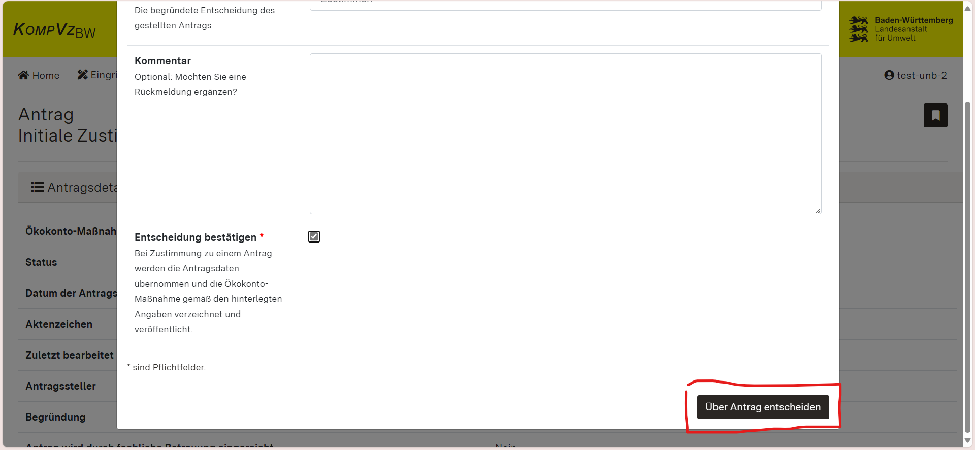 Antrag prüfen, Daten kommentieren, Antrag zustimmen / ablehnen / zurückgeben