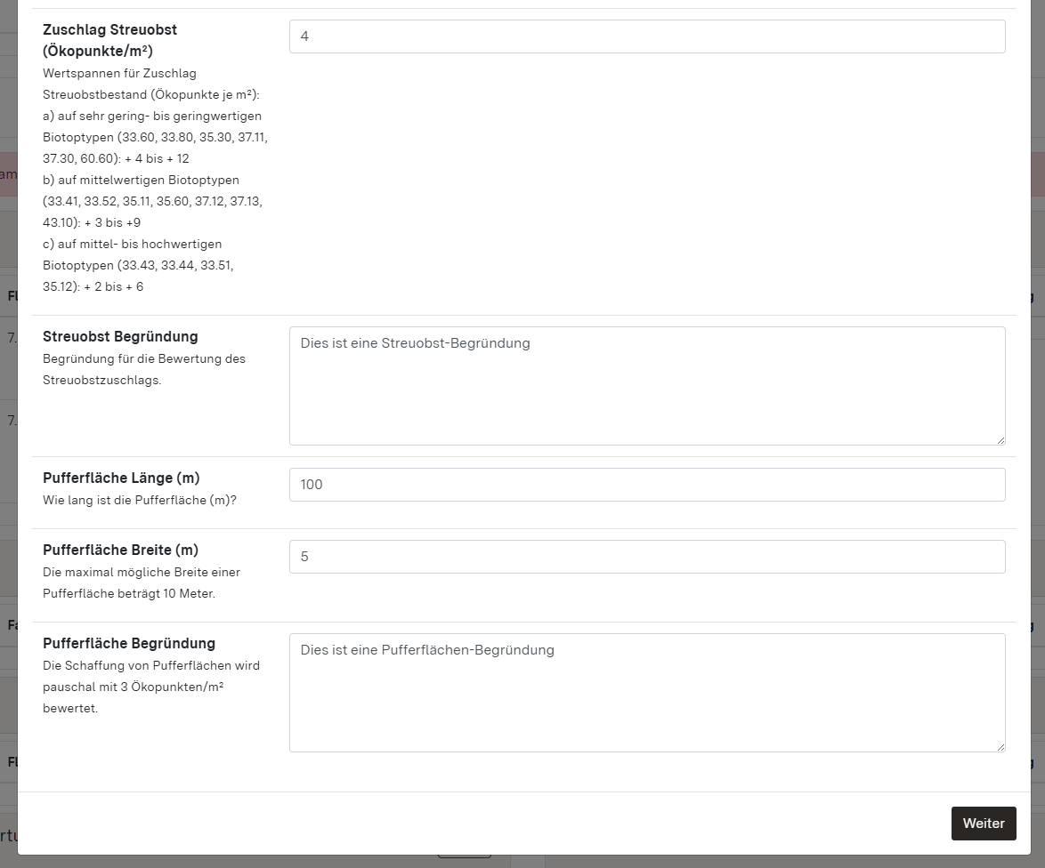 Abschließend können Angaben zu Zuschlägen hinsichtlich Streuobst ergänzt werden, ebenso wie eine Begründung zu diesen Zuschlägen.